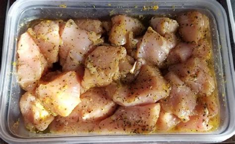 - Mariner les cubes de poulet dans la marinade au miel et soja.